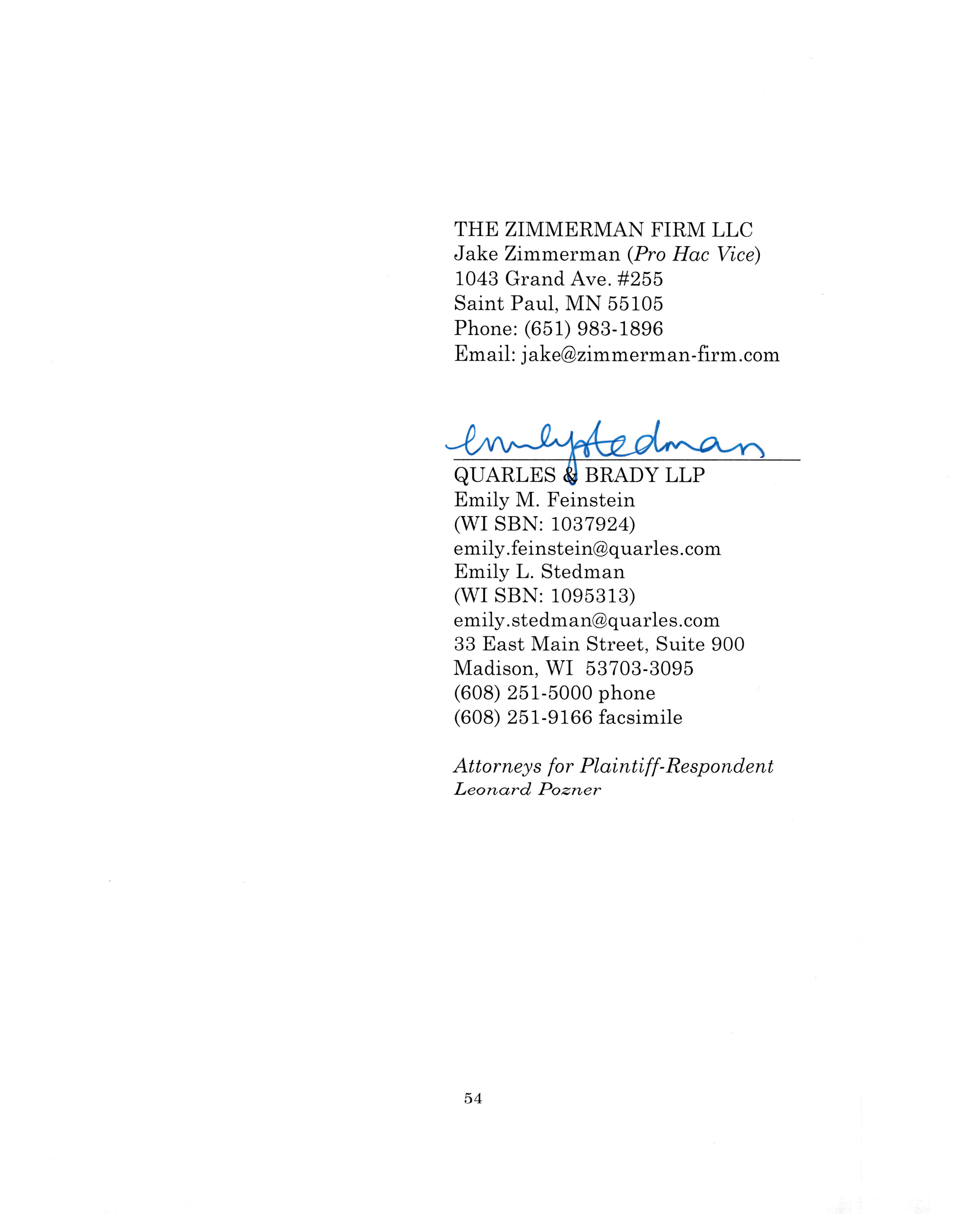 QUARLES & BRADY LLP Emily M. Feinstein(WI SBN: 1037924)emily.feinstein@quarles.com Emily L. Stedman(WI SBN: 1095313)emily.stedman@quarles.com 33 East Main Street, Suite 900 Madison, WI 53703-3095 (608) 251-5000 phone(608) 251-9166 facsimile