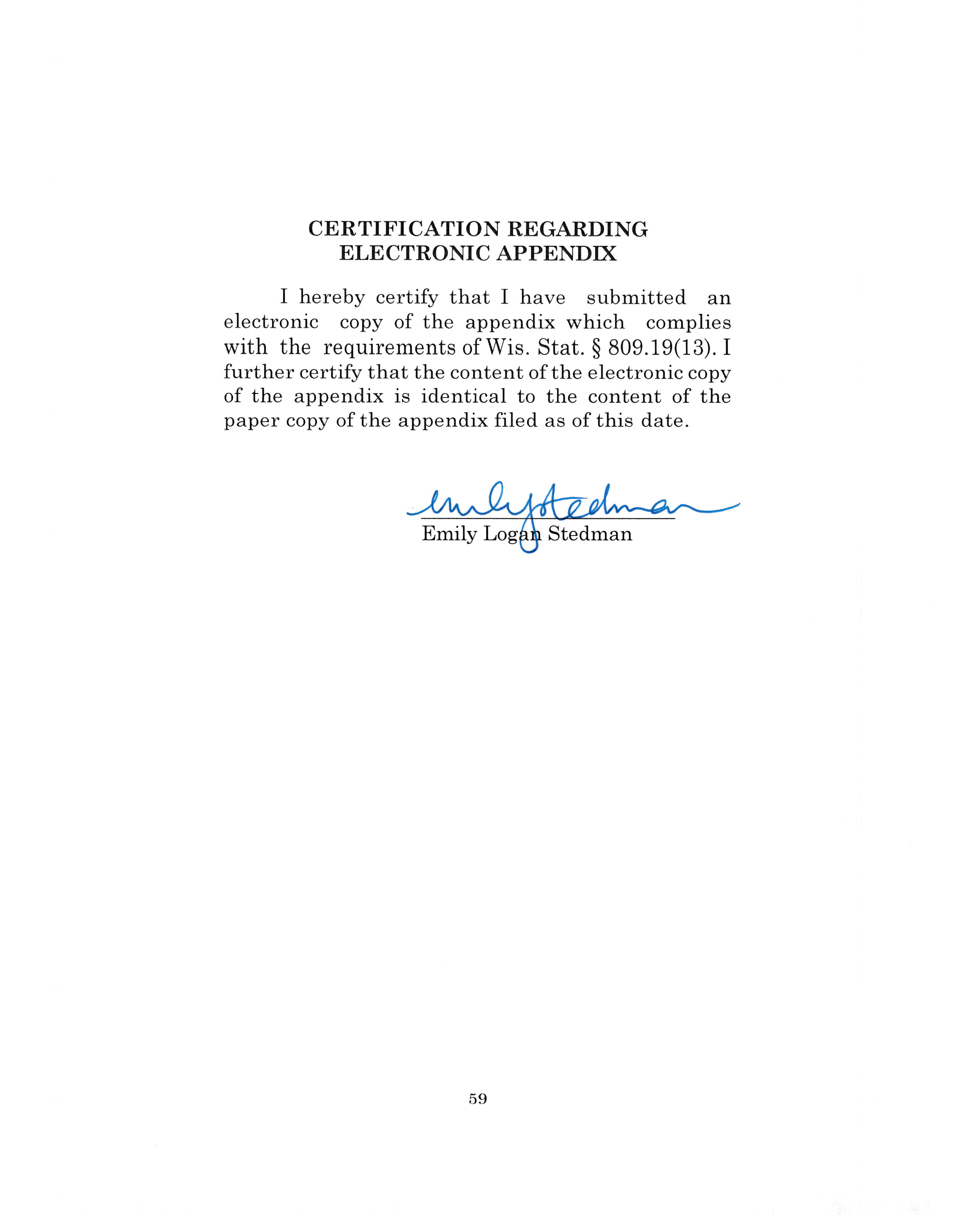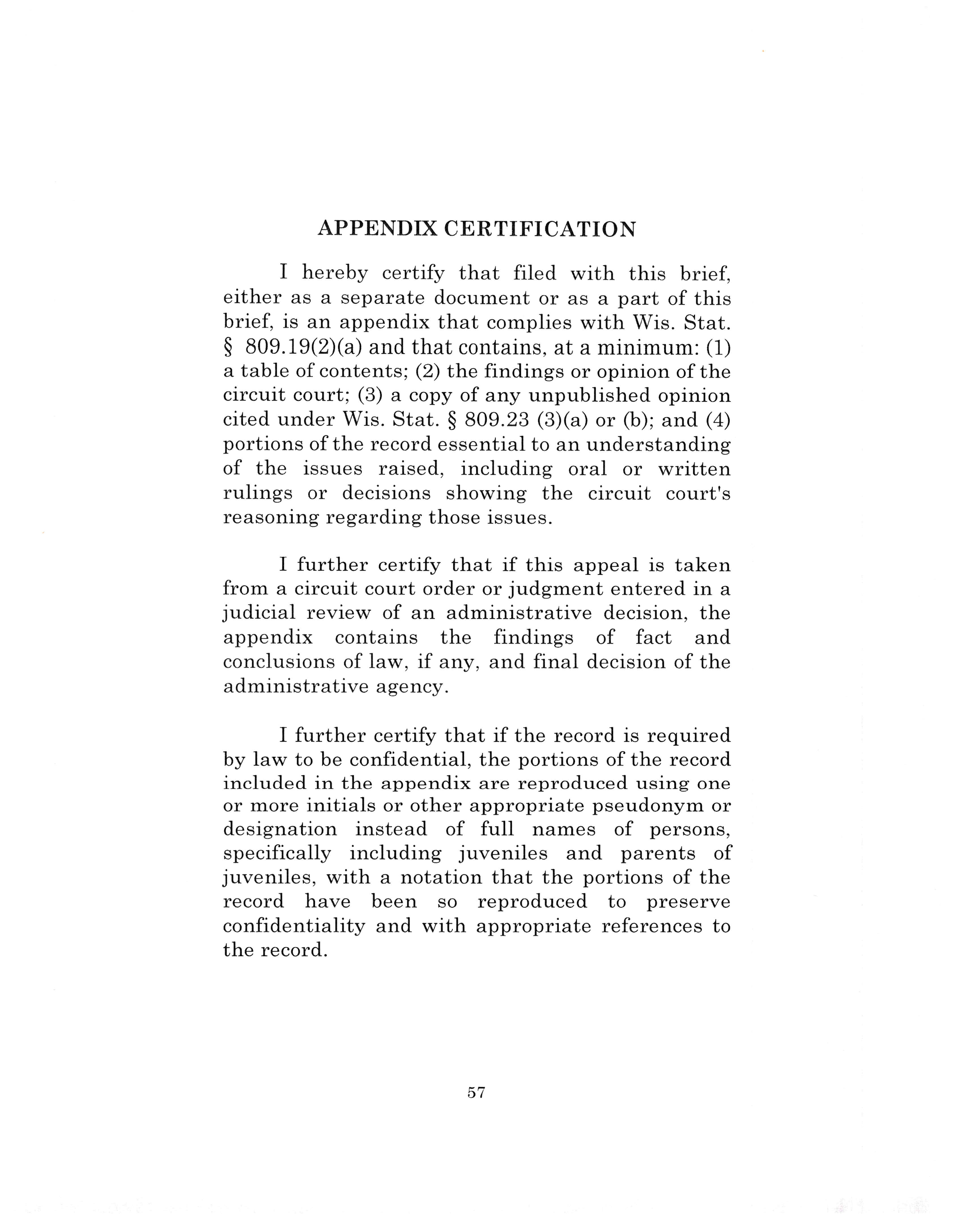 Wis. Stat. § 802.08(2) ..............................................7 Wis. Stat. § 802.08(3) ........................................... 38 Wis. Stat. § 804.01(2)(a) and (am) ...................... 12 Wis. Stat. § 805.13(3) ........................................... 45 Wis. Stat. § 805.14 ............................................... 51 Wis. Stat. § 805.18(2) ................................. 7, 38, 43 Wis. Stat. § 809.19(1)(e) ...................................... 11 Wis. Stat. § 809.19(12) ......................................... 57 Wis. Stat. § 809.19(13) ......................................... 60 Wis. Stat. § 809.23 (3)(a) or (b) ........................... 58 Wis. Stat. § 809.19(2)(a) ..................................... 58 Wis. Stat. §§ 809.19(8)(b) and (c) ........................ 56